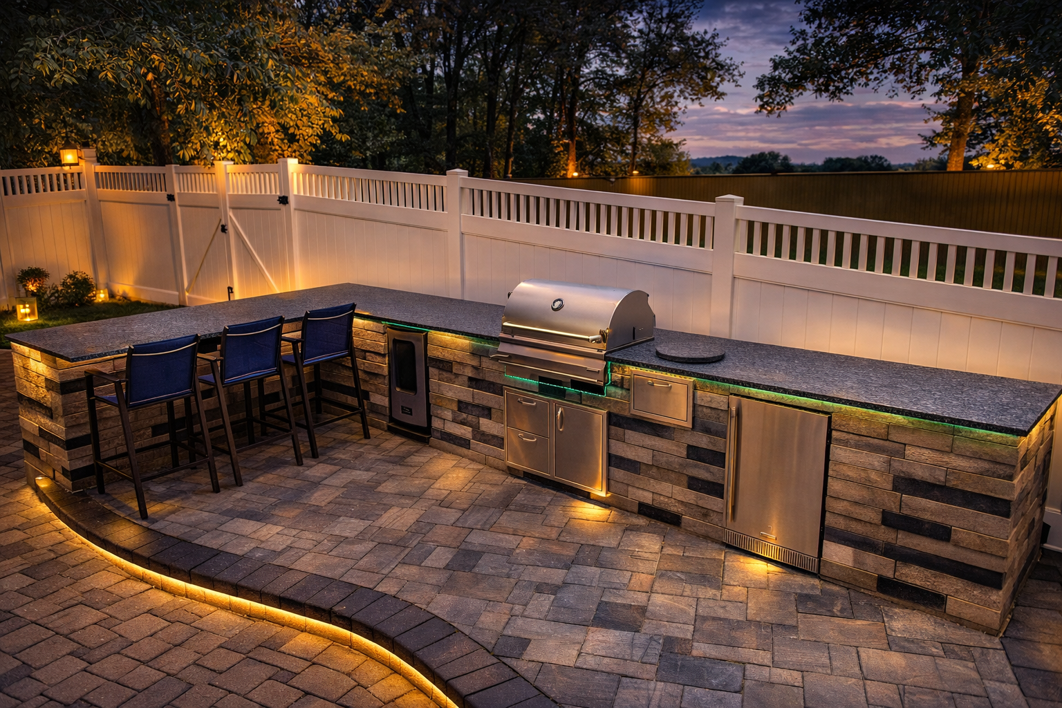 Transform your backyard into a stunning outdoor kitchen and living space with NorthSun Contractors, where we blend functionality and style to create your perfect oasis.